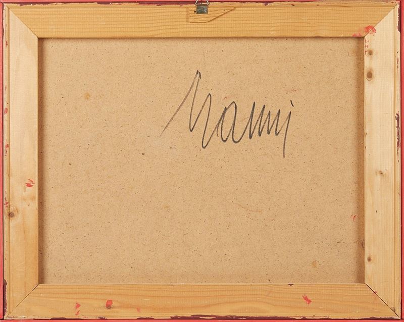 MARIO NANNI (Castellina in chianti 1922 - Bologna 2019) "Mappa". Olio, tecnica mista e collage su tavola. Cm 41x51. Opera firmata in basso a destra Nanni. Al retro opera firmata Nanni.