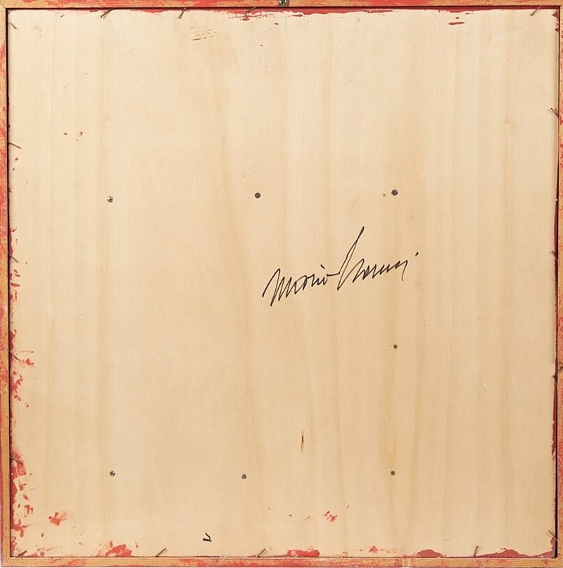 MARIO NANNI (Castellina in chianti 1922 - Bologna 2019) "Senza titolo". Olio, tecnica mista e collage su tavola. Cm 51x51x6. Al retro opera firmata Mario Nanni.