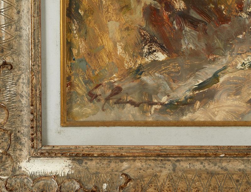 GUGLIELMO PIZZIRANI (Bologna 1886 – Bologna 1971) "Senza titolo". Olio su tavola. Cm 52x61. Opera firmata in basso a sinistra G. Pizzirani.