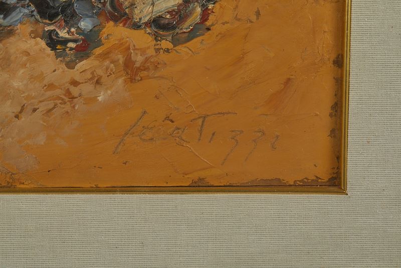 SERGIO SCATIZZI (Gragnano 1918 - Firenze 2009) "Natura morta". Olio su tavola. Cm 33,5x44. Opera firmata in basso a destra Scatizzi. Opera accompagnata da autentica su fotografia a firma del maestro Scatizzi.