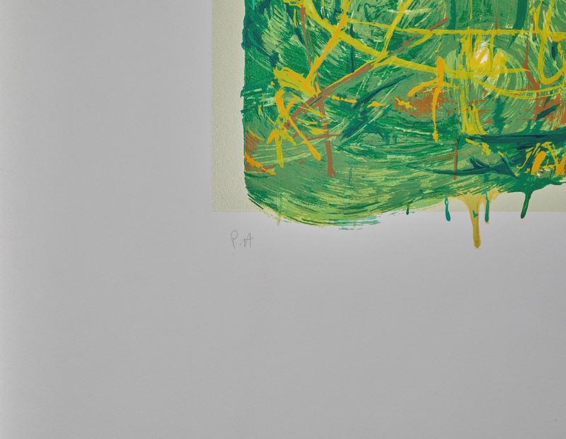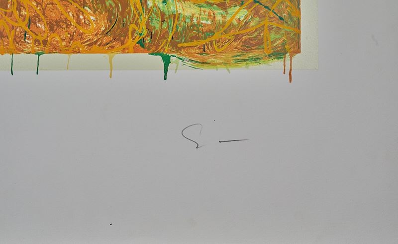 MARIO SCHIFANO (Homs 1934 – Roma 1998) “Senza titolo”. Serigrafia polimaterica su carta. Cm 100x120. Opera firmata in basso a destra Schifano. Reca in basso a sinistra numeri di tiratura p.a.
