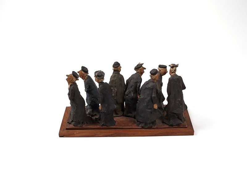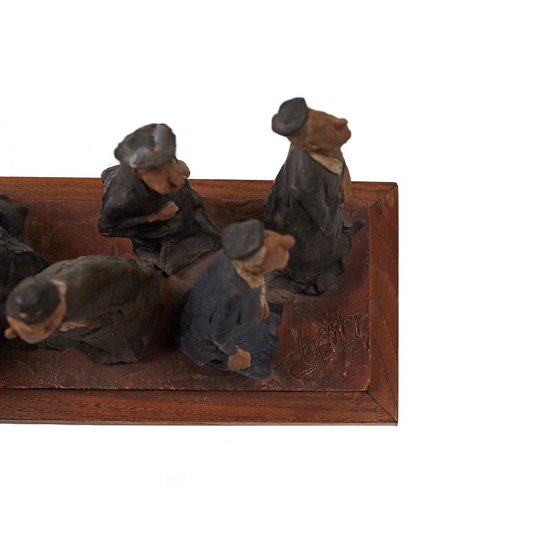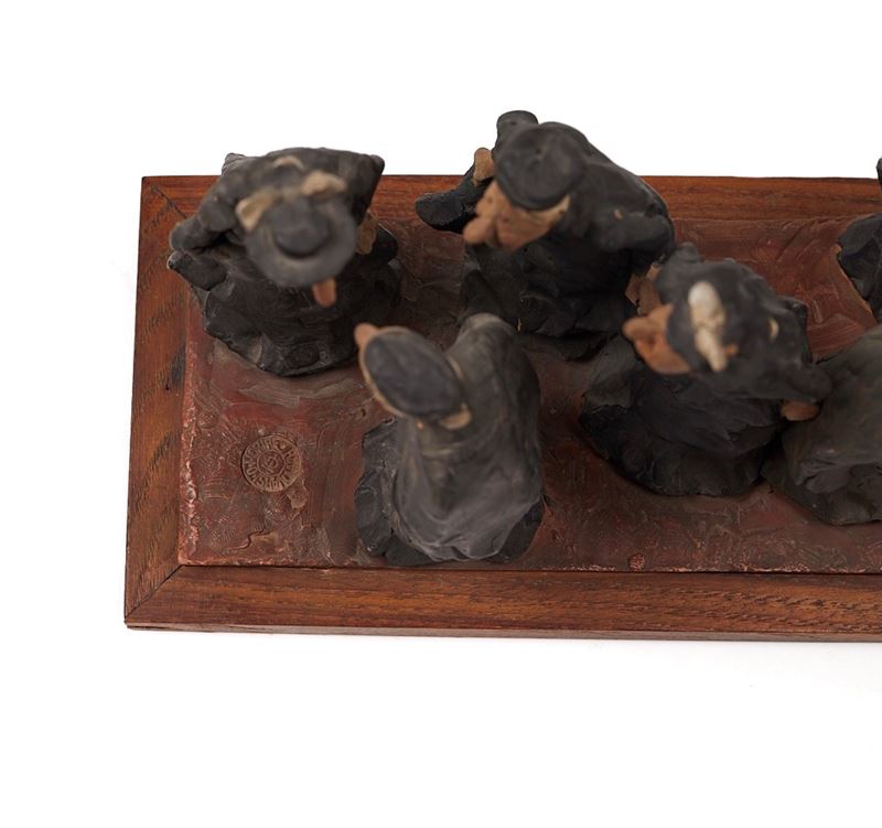 CLETO TOMBA (Castel San Pietro Terme 1898 - Bologna 1987) "Le beghine". Scultura in terracotta policroma. Cm 15x28x9,5. Opera firmata sulla base a destra Cleto Tomba. Reca timbro Cleto Tomba sulla base a sinistra.