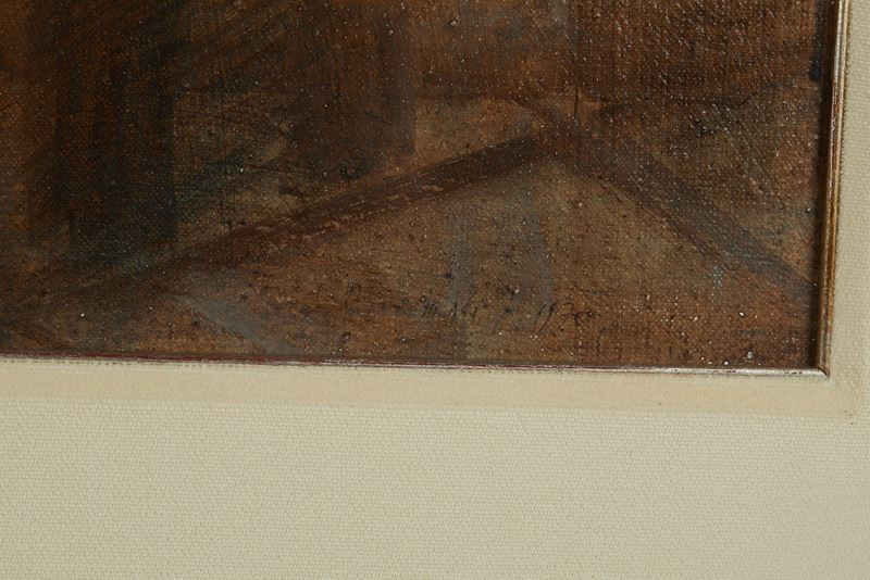 RICCARDO TOMMASI FERRONI (Pietrasanta 1934 - Pieve di Camaiore 2000) "S. Ivo alla Sapienza", 1970. Olio su tela. Cm 70x100. Opera firmata e datata in basso a destra R. Tommasi Ferroni 1970. Al retro reca timbro del maestro con firma, titolo, tecnica e misure. Al retro reca firma Galleria Forni, Bologna.