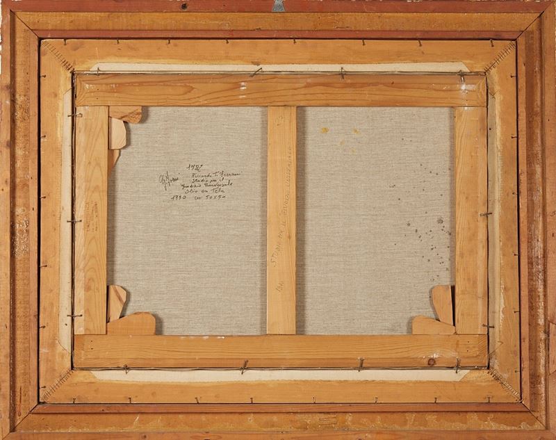 RICCARDO TOMMASI FERRONI (Pietrasanta 1934 - Pieve di Camaiore 2000) "Studio per il Giudizio Universale", 1970. Olio su tela. Cm 50x70. Opera firmata e datata in basso a destra R. Tommasi Ferroni 1970. Al retro reca timbro del maestro con firma, titolo, tecnica e misure. Al retro reca timbro l'Artistica, Roma. Al retro reca firma Galleria Forni, Bologna.