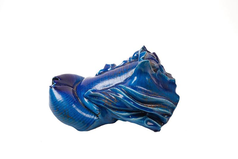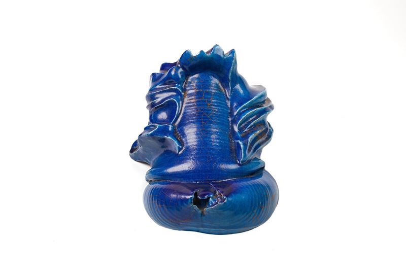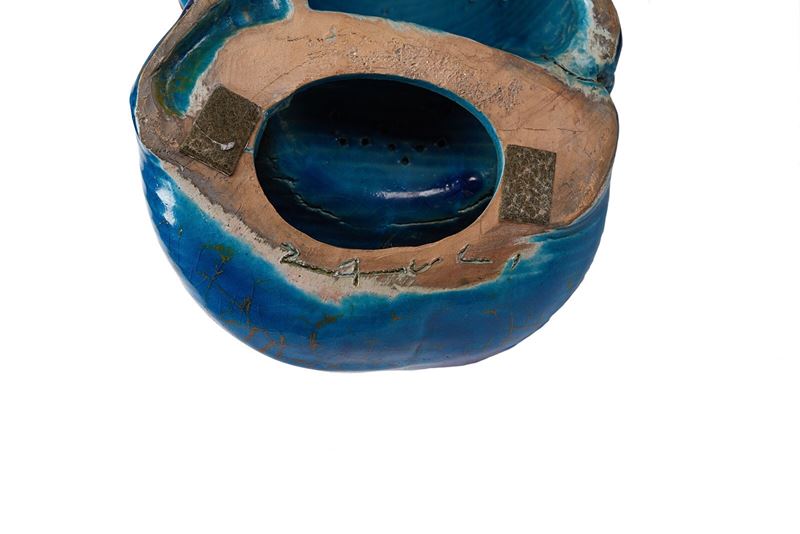 CARLO ZAULI (Faenza 1926 - Faenza 2002) "Erotismo turchese", 1987. Scultura in gres smaltata. Cm 16x30x21. Opera firmata sotto la base Zauli.
