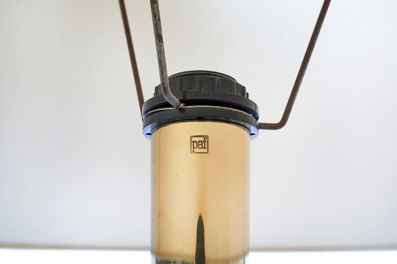 ALVINO BAGNI (Signa 1919 - 2009) Lampada da tavolo in ceramica e ottone. Anni '70. Cm 70x63 Ø. Prod. Paf, Milano, Italia. Reca marchio Paf.
