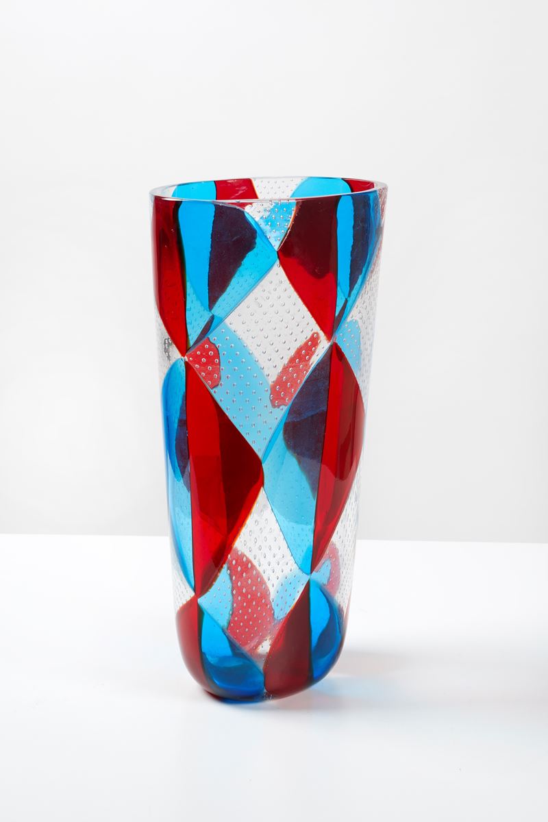 ERCOLE BAROVIER Vaso in vetro soffiato a tessere con bolle d'aria contollate. 1961-63. Cm 38,5x19,5x13. Prod. Barovier & Toso, Murano, Italia.