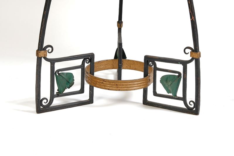 Coppia di fioriere da giardino in stile Art Nouveau. Realizzate in ferro battuto, arricchite da fiori e foglie dipinte. Fine del XIX - inizi del XX secolo. Cm 102x54.