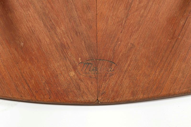 VITTORIO NOBILI Vittorio Nobili (1919 - 2008) Sedia modello "Medea" in metallo e teak. Anni '50. Cm 82,5x46x50. Prod. Fratelli Tagliabue, Italia. Reca marchio Medea, mod. depositato.