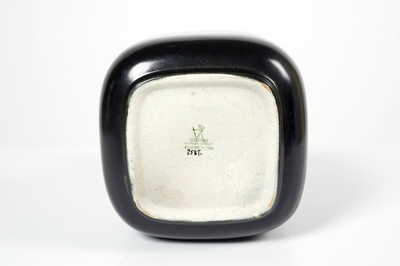 GIOVANNI GARIBOLDI (Milano 1908 - 1971) Vaso in ceramica smaltata nera. Anni '50. Cm 27x19 Ø. Prod. Richard Ginori, Italia. Sotto la base reca marchio Richard Ginori, Fabbricato in Italia.