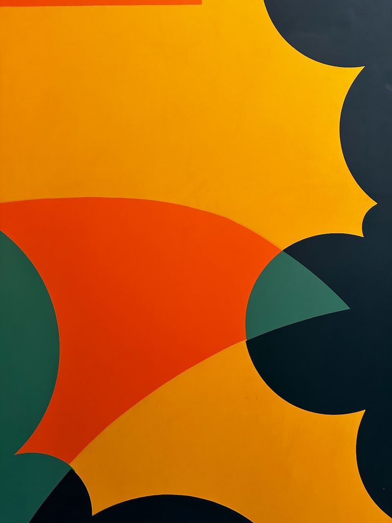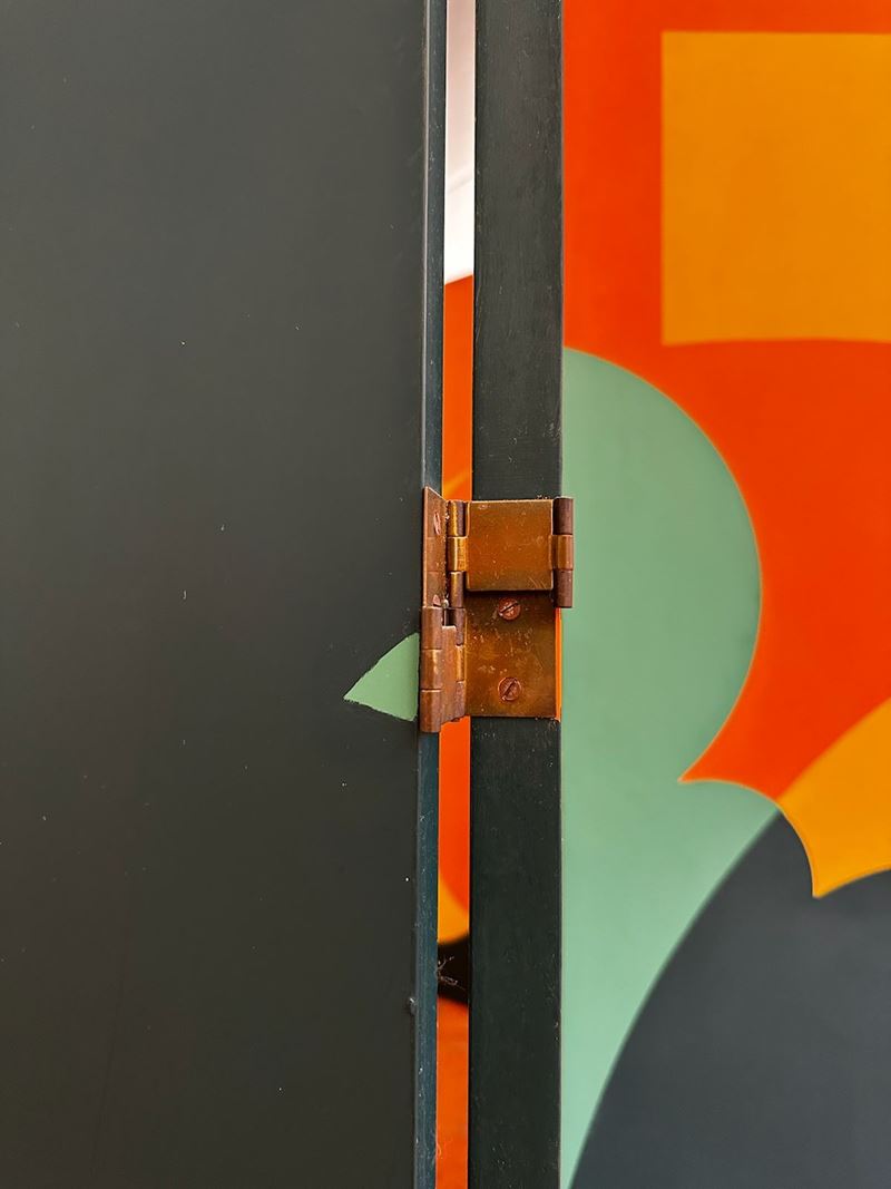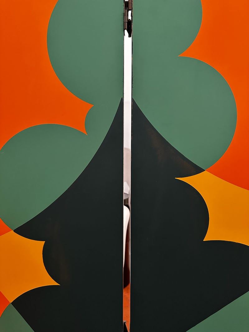 GIACOMO BALLA (Torino 1871 - Roma 1958) Paravento composto da due elementi a tre pannelli in legno laccato sia sul lato interno che esterno, 1968. Cm 201x362x3. Prod. Simon Gavina, Italia (lievi difetti)