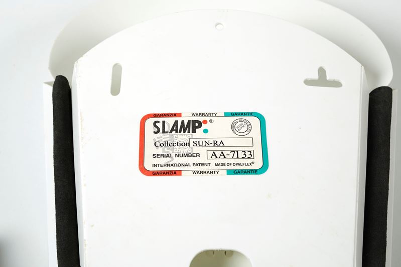 SAMUEL PARKER Applique modello "Sun-Ra" in opalflex bianco. XX secolo. Cm 33x23x14. Prod. Slamp, Italia. Reca etichetta Slamp.