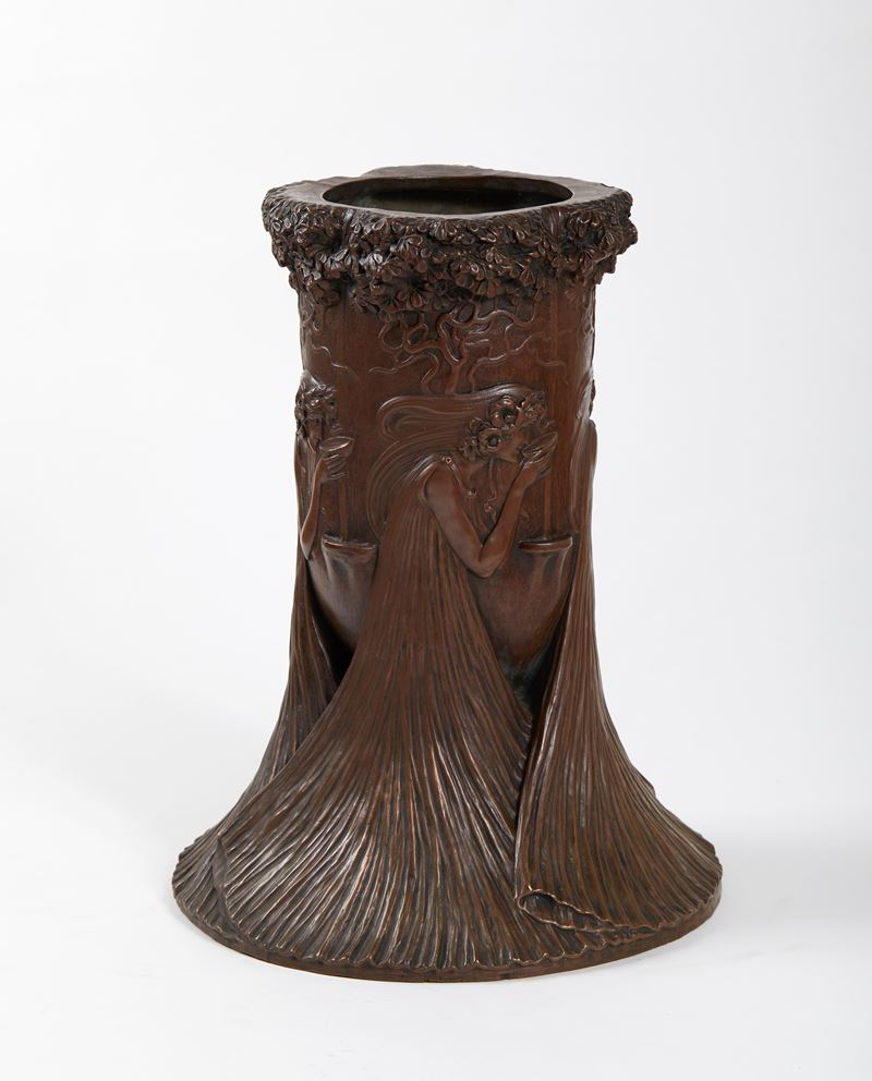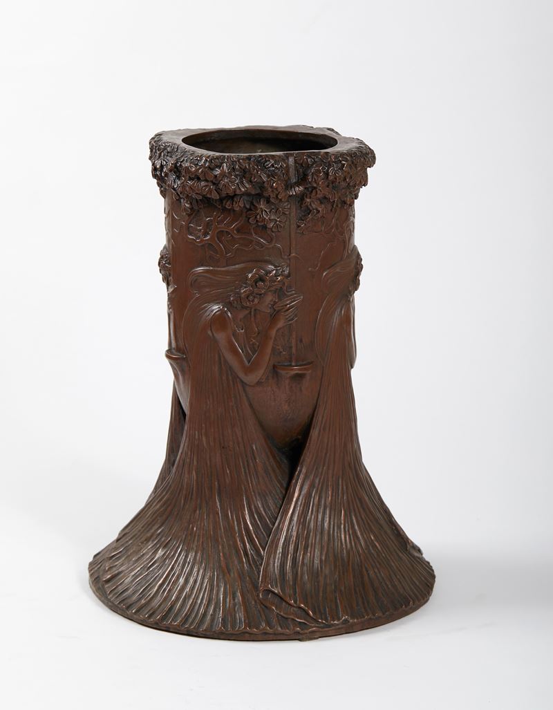 ACHILLE TAMBURLINI, RAFFAELE CARBONARO Grande vaso in terracotta galvanizzata in rame. 1900 ca. Cm 46,5x36,5⌀. Opera firmata alla base A.T.R.C, Venezia.