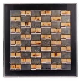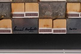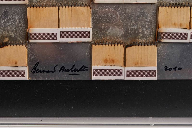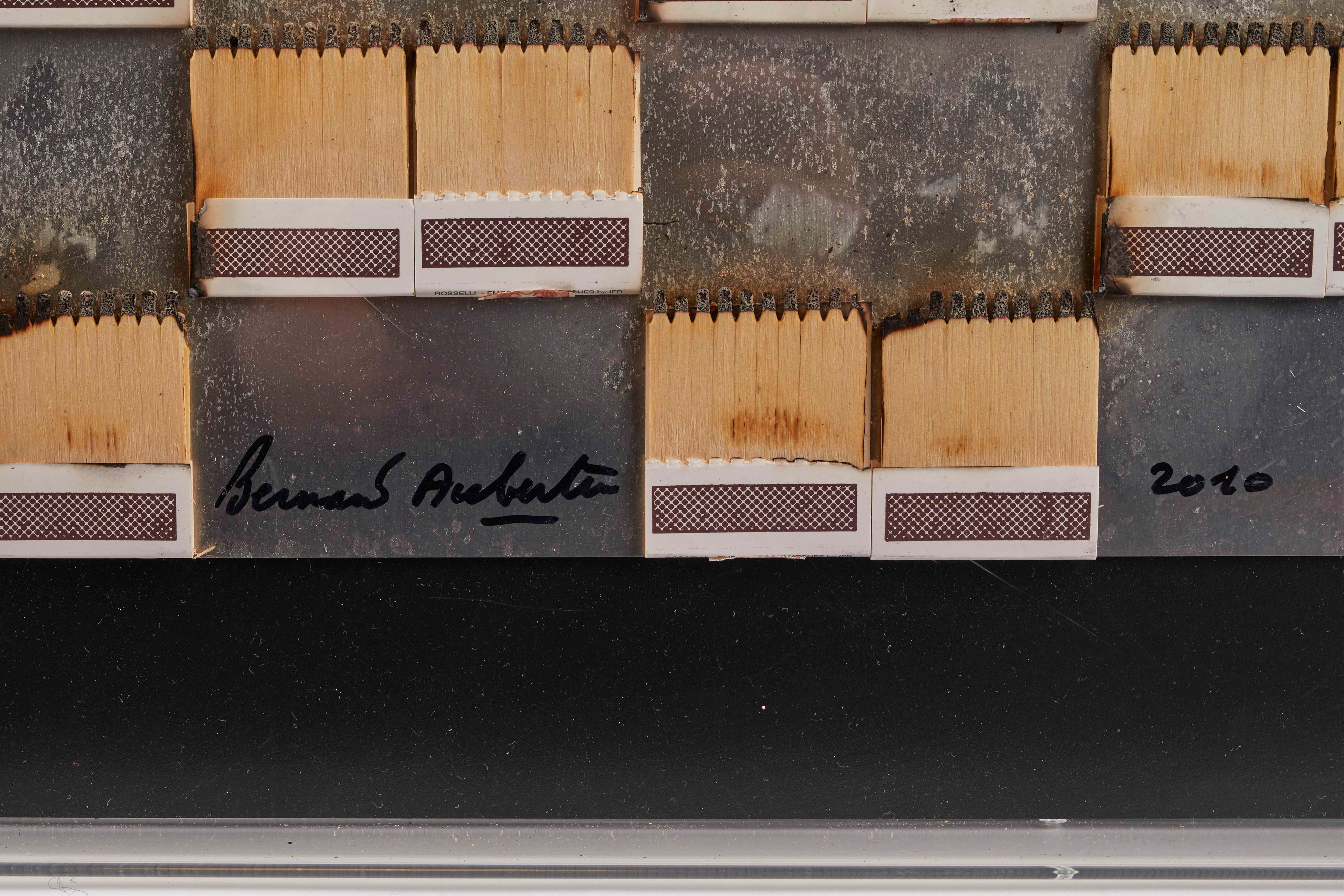 BERNARD AUBERTIN (Fontenay-aux-Roses 1934 - Reutlingen 2015) "Fiammiferi bruciati su alluminio", 2010. Fiammiferi bruciati su alluminio. Cm 50x50. Opera firmata e datata in basso a destra Bernard Aubertin 2010. Opera accompagnata da autentica su fotografia a firma del maestro.