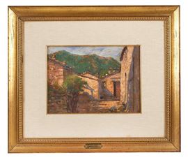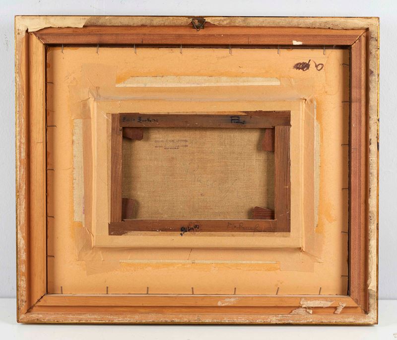 FLAVIO BERTELLI (Bologna 1865 - Rimini 1941) "Paesaggio". Olio su tela. Cm 26x36,5. Opera firmata al retro Flavio Bertelli. Al retro reca timbro della Galleria d'Arte La Colomba, Bologna. Al retro reca timbro Studio d'Arte Farini, Bologna.