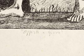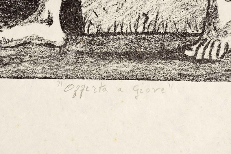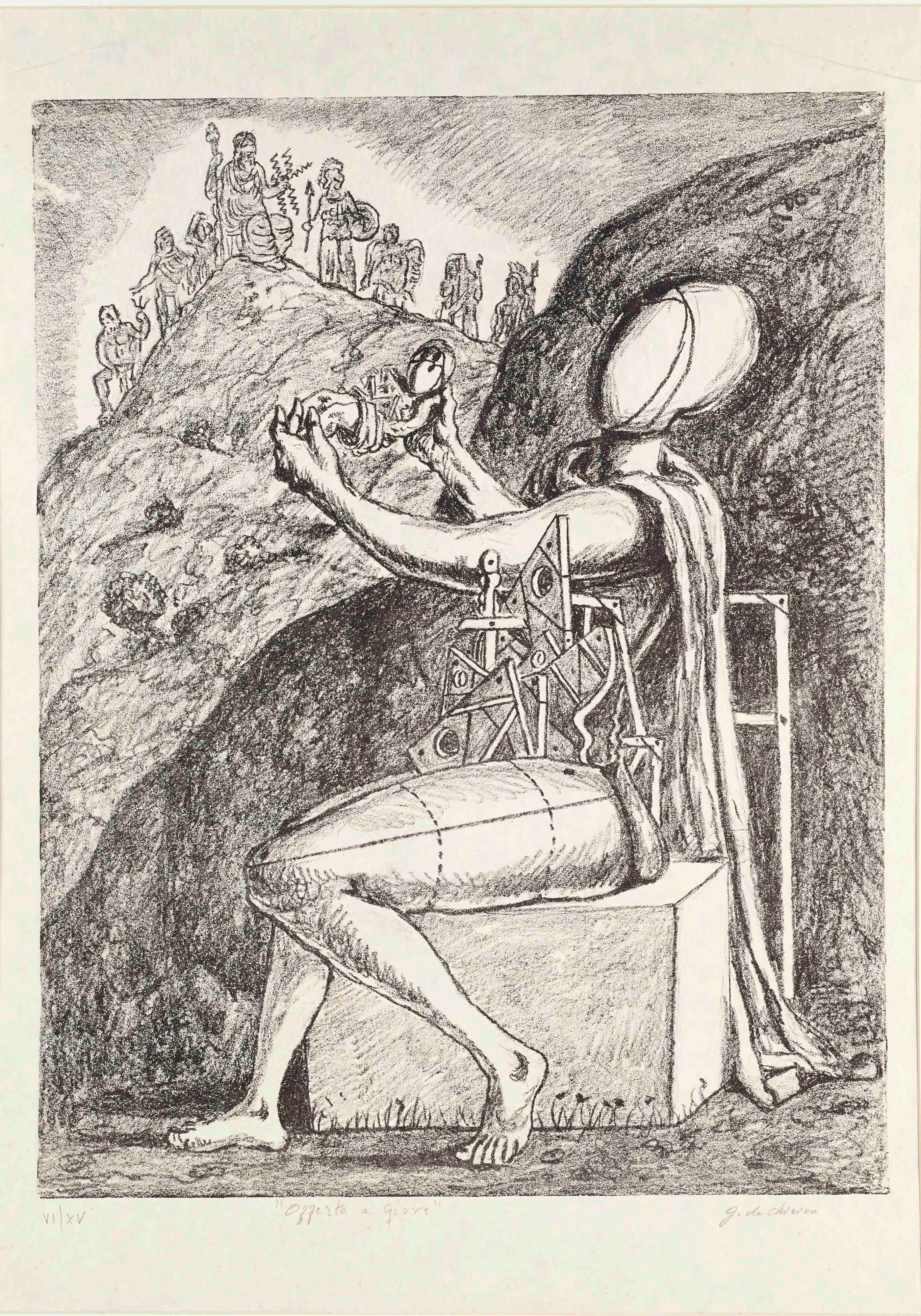 GIORGIO DE CHIRICO (Volos 1888 – Roma 1978) “Offerta a Giove”, 1969. Litografia a colori su carta japon. Cm 72x50. Opera firmata in basso a destra G. de Chirico. Reca numeri di tiratura in basso a sinistra VI/XV. Opera intitolata in basso al centro Offerta a Giove.