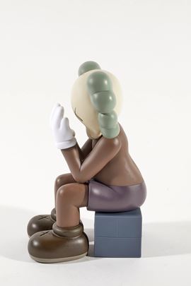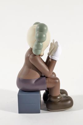 KAWS (Jersey City 1974) "Companion (Passing Through)", 2007. Scultura in vinile verniciato. Cm 27x11,5x17,5. Sotto al piede sinistro reca scritta Kaws 07. Sotto al piede destro Medicom Toy 2007, Made in China. Corredato di scatola originale