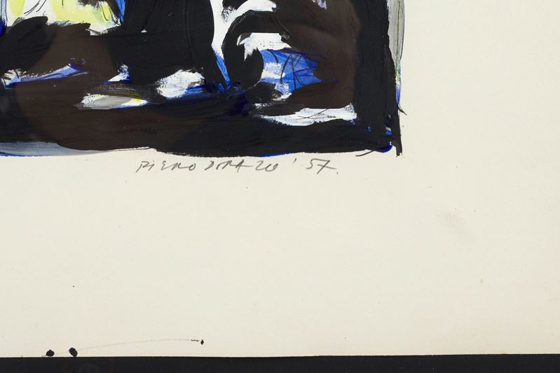 PIERO DORAZIO (Roma 1927 - Perugia 2005) "Composizione", 1957. Tempera su carta. Cm 44x57,5. Opera firmata e datata in basso a destra Piero Dorazio '57.