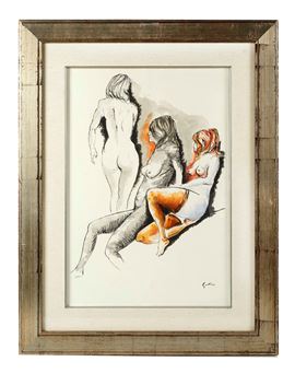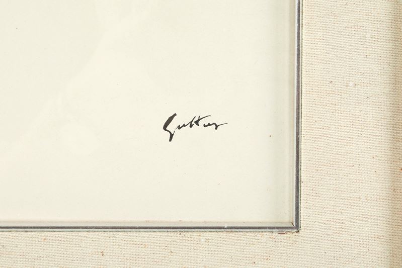RENATO GUTTUSO (Bagheria 1911 - Roma 1987) "Senza titolo", anni '70. Acquerello e tecnica mista su carta intelata. Cm 53x37. Opera firmata in basso a destra Guttuso. Al retro reca numero di riferimento 1086. Opera in fase di archiviazione presso l'archivio Guttuso.