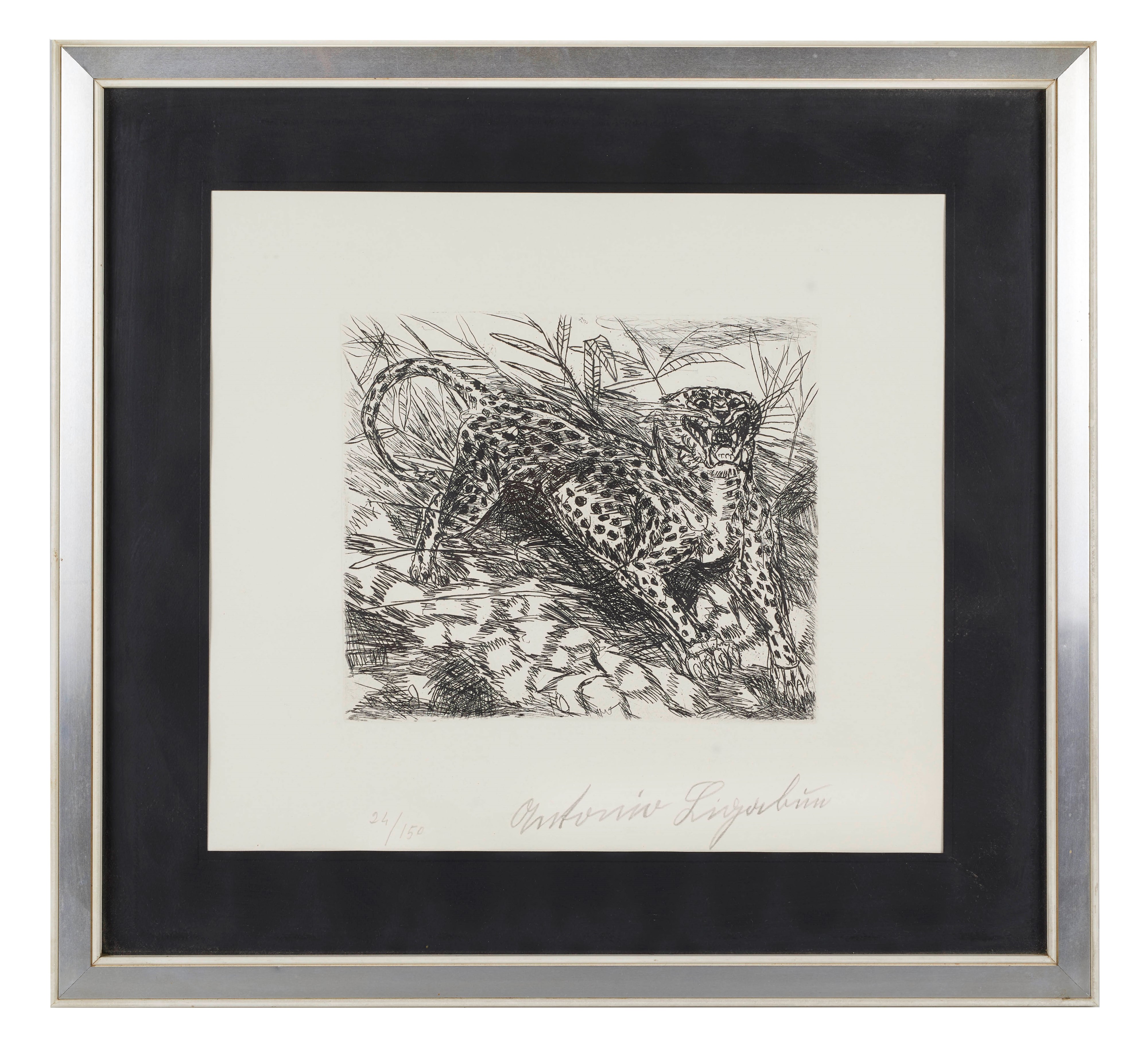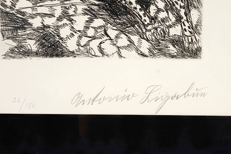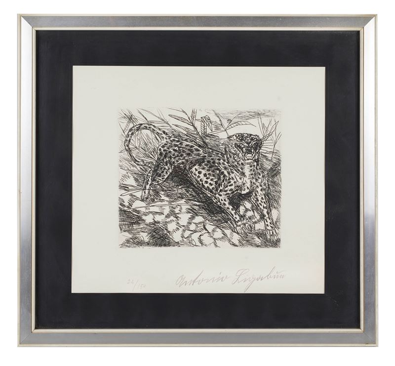 ANTONIO LIGABUE (Zurigo 1899 - Gualtieri 1965) "Tigre", 1978. Incisione su carta. Cm lastra: 22,5x 25. Opera firmata in basso a destra Antonio Ligabue. Reca numeri di tiratura in basso a sinistra 24/150.