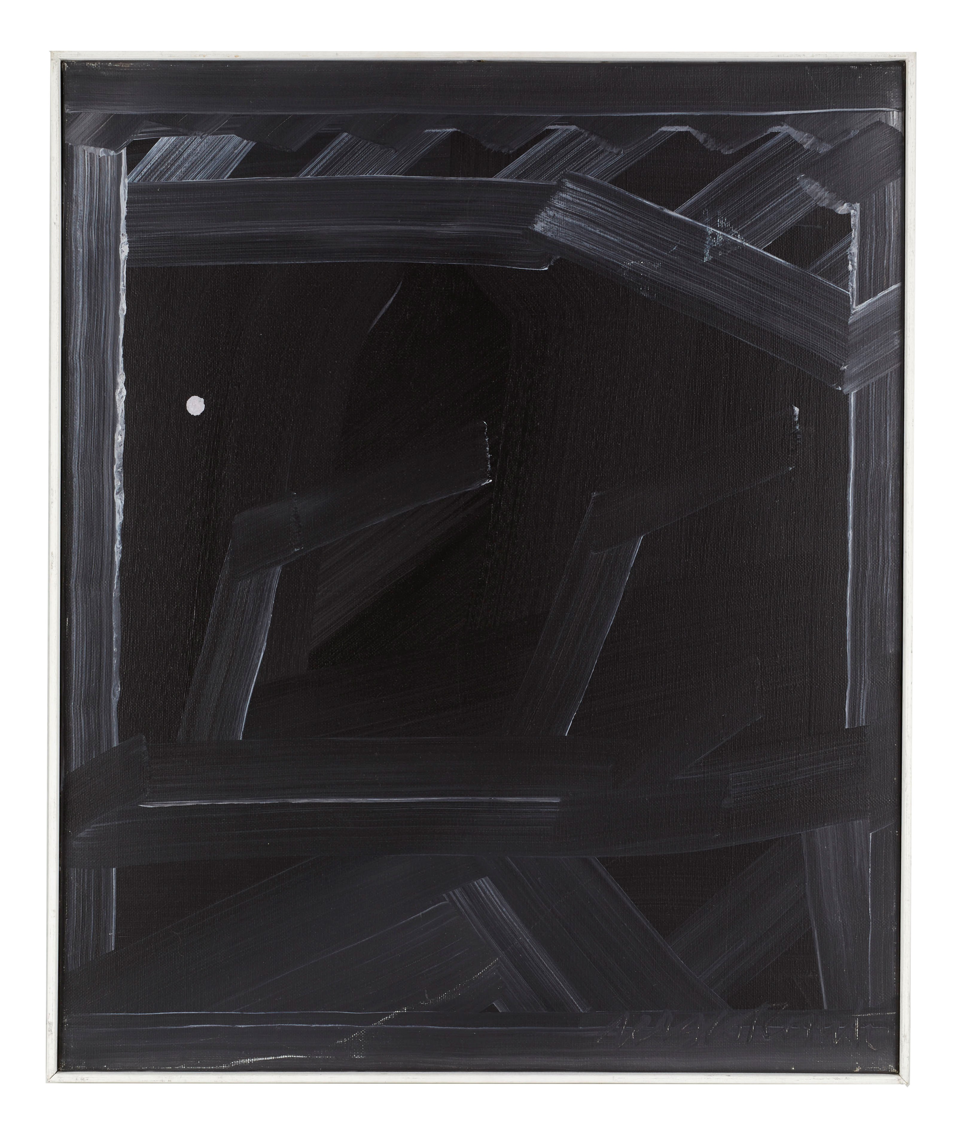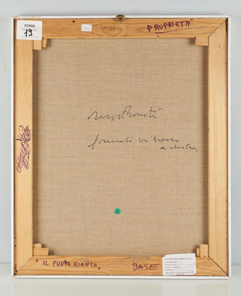 SERGIO ROMITI (Bologna 1928 - Bologna 2000) "Il punto bianco", 1995. Acrilico su tela. Cm 60x50. Opera firmata in basso a destra Sergio Romiti. Al retro opera firmata Sergio Romiti. Al retro reca etichetta Galleria d'arte Forni, Bologna ed etichetta Archivio Sergio Romiti a firma Giovanna Grassi Romiti.