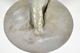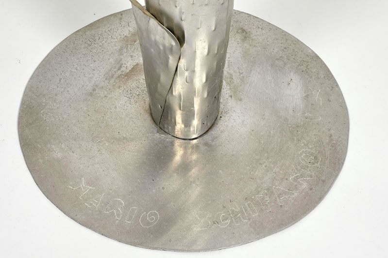 MARIO SCHIFANO (Homs 1934 - Roma 1998) "Per costruzione di oasi". Scultura in metallo (alluminio). Cm h 225. Sulla base opera intitolata, firmata e numerata Mario Schifano, per costruzione di oasi, p.a.