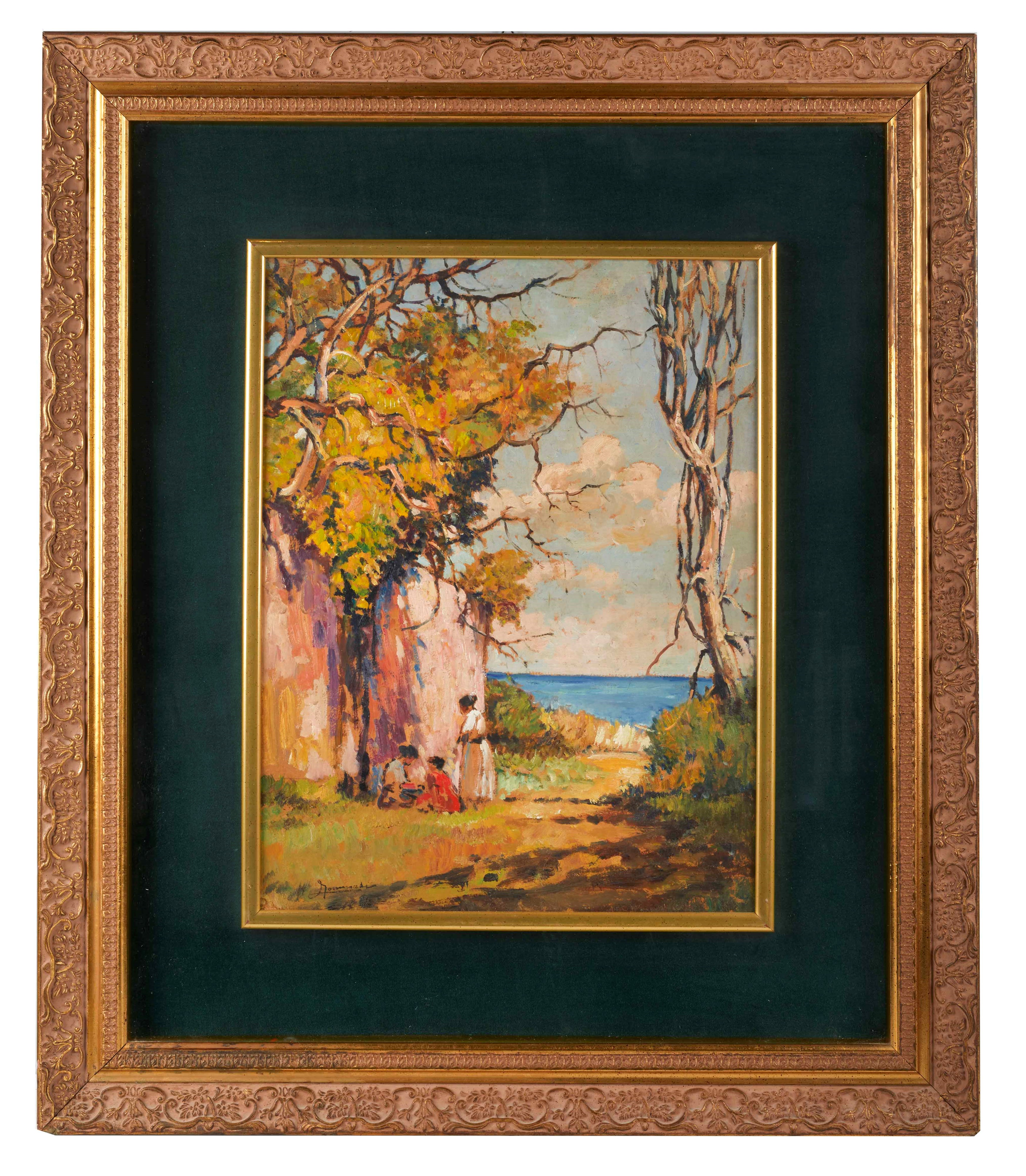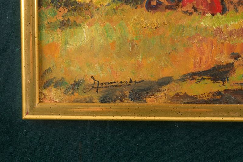 LUDOVICO TOMMASI (Livorno 1866 - Firenze 1941) "Scorcio". Olio su cartone. Cm 52x37. Opera firmata in basso a sinistra L. Tommasi. Al retro reca scritta per autentica a firma Mario Borgiotti, Milano, 22/09/1961. Al retro reca timbro Galleria Il Cavalletto, Cecina, Livorno, a firma di Giuseppe Rossi e timbro Galleria Pesaro, Milano. Opera accompagnata da autentica del Professor Francesco Arcangeli, Bologna, 3/03/1972.