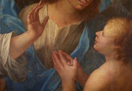 Maestro del XVIII secolo, "Angelo custode". Olio su tela. Cm 74x56.