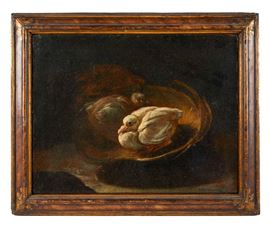 FELICE BOSELLI (Piacenza 1650 - Parma 1732) attr. "Piccioni". Olio su tela. Cm 35x50.