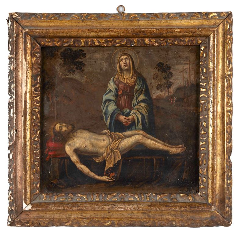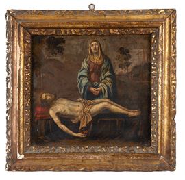 Maestro Emiliano del ambito del Tiarini "Cristo deposto". Olio su tavola. Cm 21x22.