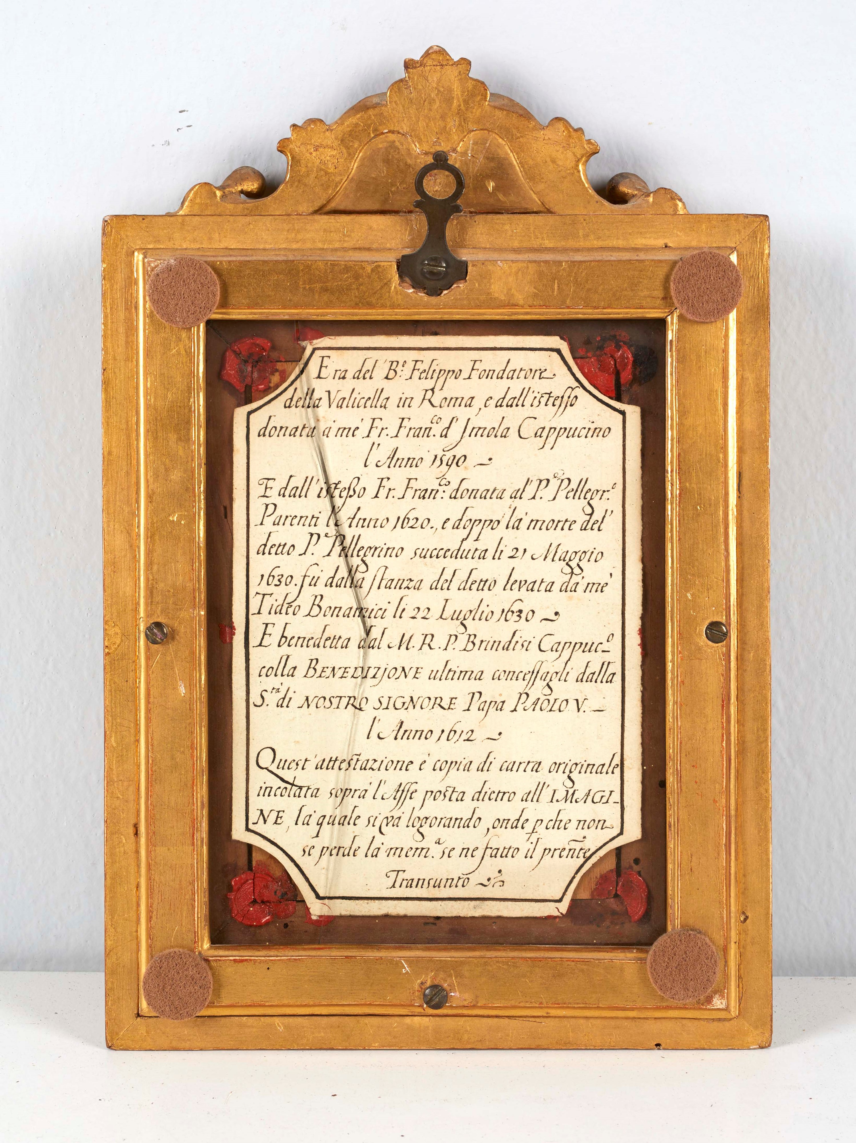 Provenienza: B. Filippo, fondatore della Vallicella a Roma (1590), e dallo stesso donata a Fra Francesco d'Imola (1620). Da quest'ultimo donata a Padre Pellegrino Parenti (21 maggio 1630). Alla sua morte l’opera venne consegnata a Tideo Bonamici (22 luglio 1630).