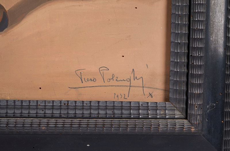 PIERO POLENGHI "Il violinista", 1932. Olio su tavola. Cm 100x70. Opera firmata e datata in basso a destra Piero Polenghi 1932.