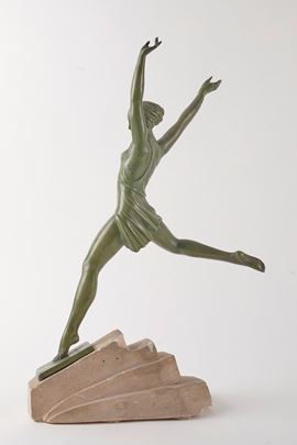 PIERRE LE FAGUAYS (Rezé 1892 - Parigi 1962) “Olympia”, anni ’20. Scultura in bronzo in stile art decò su base in marmo. Prod. Max Le Verrier, Francia. Cm 52x34x10. Alla base reca firma Faguays.