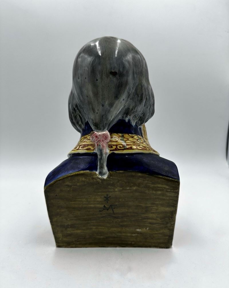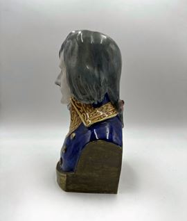 MANIFATTURA MINGHETTI Busto di Napoleone Bonaparte in ceramica policroma, uniforme da generale. Cm 22x12. Firmato sotto la base AMF.