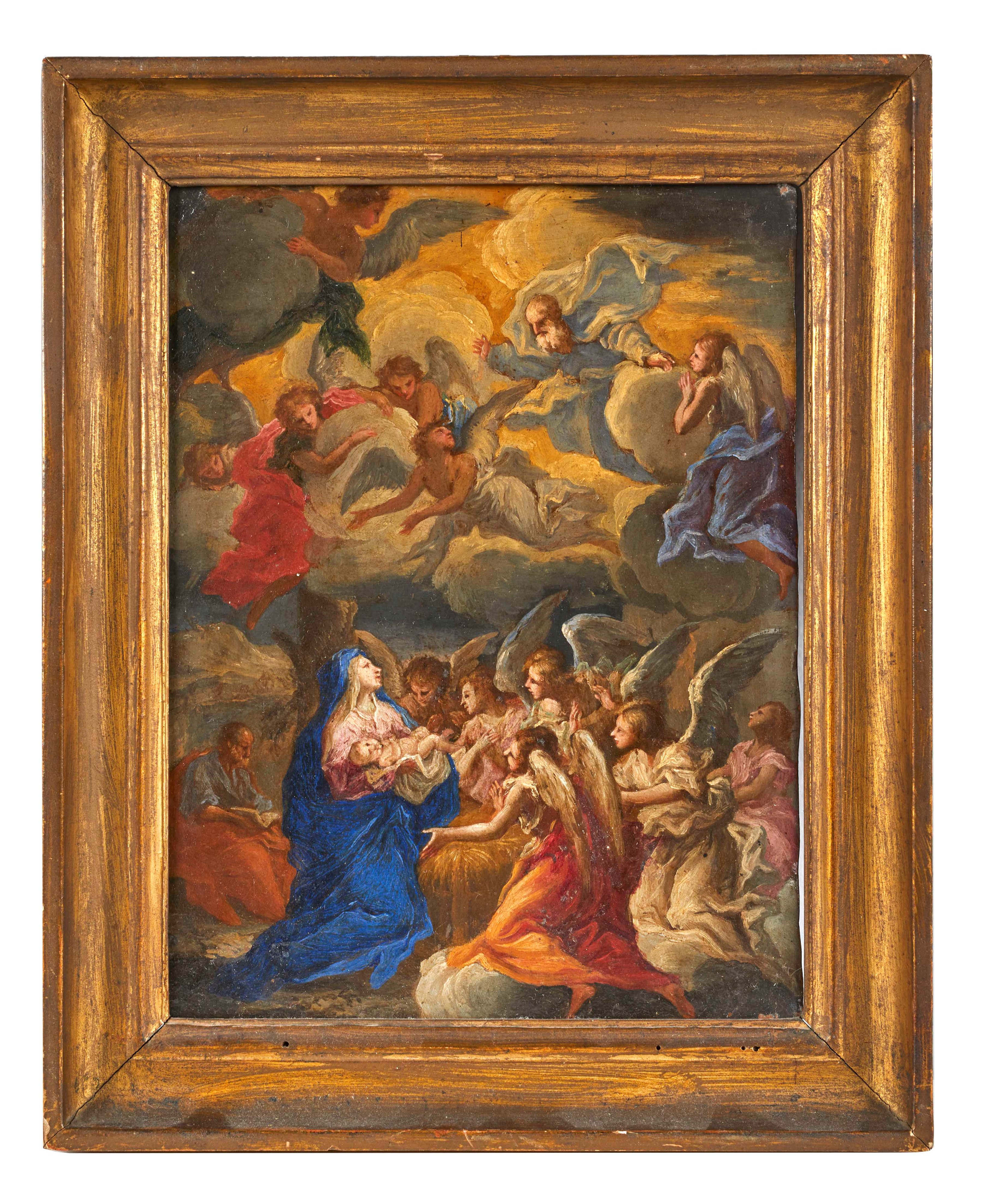 Maestro del XVII secolo "Natività". Olio su rame. Cm 27x20.