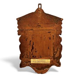 Maestro della fine del XVIII - inizi del XIX secolo, "Natività". Cartapesta dipinta su tavola entro cornice coeva. Cm 52x37x7.