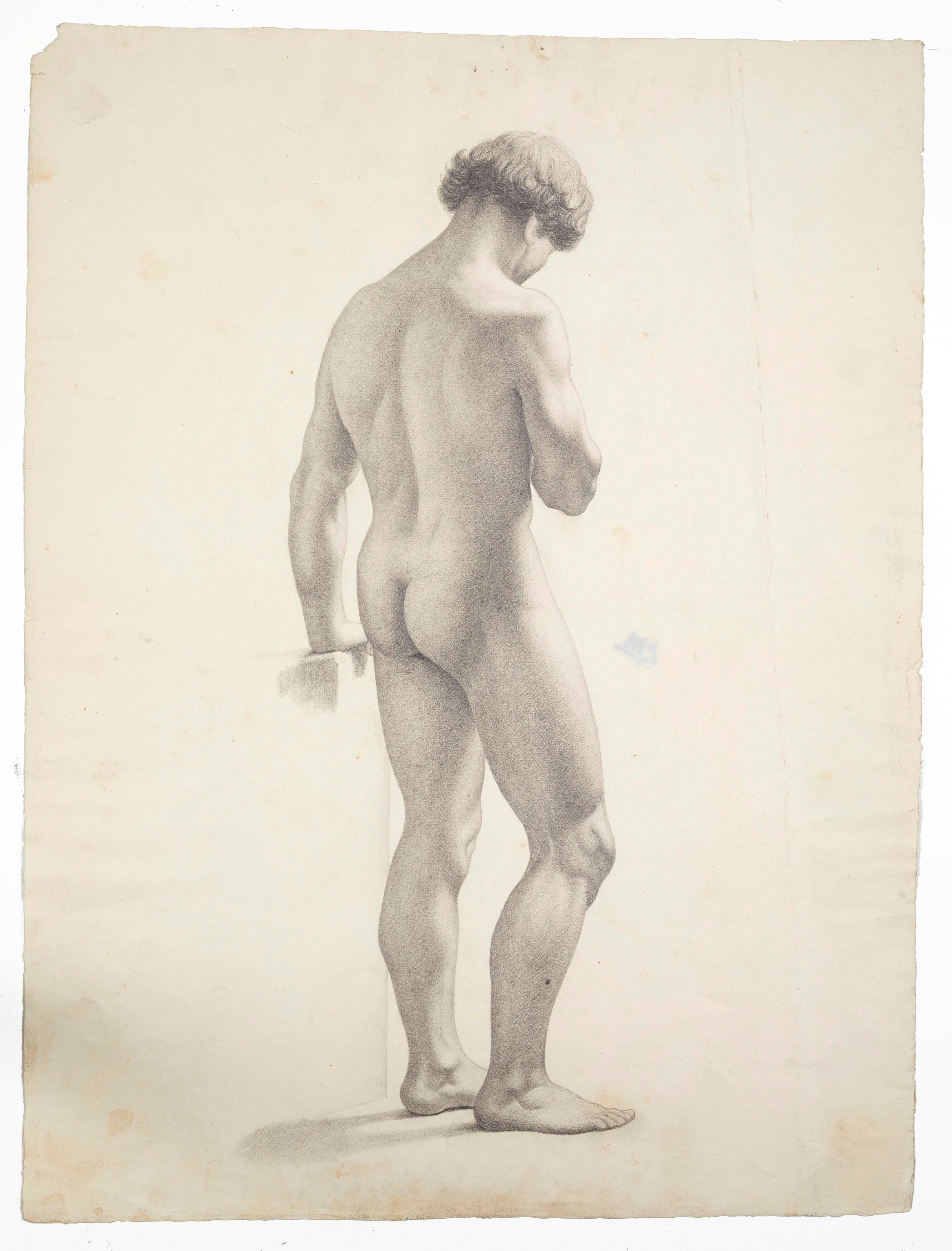 "Nudo maschile", XIX secolo. Matita su carta. Cm 49x37.