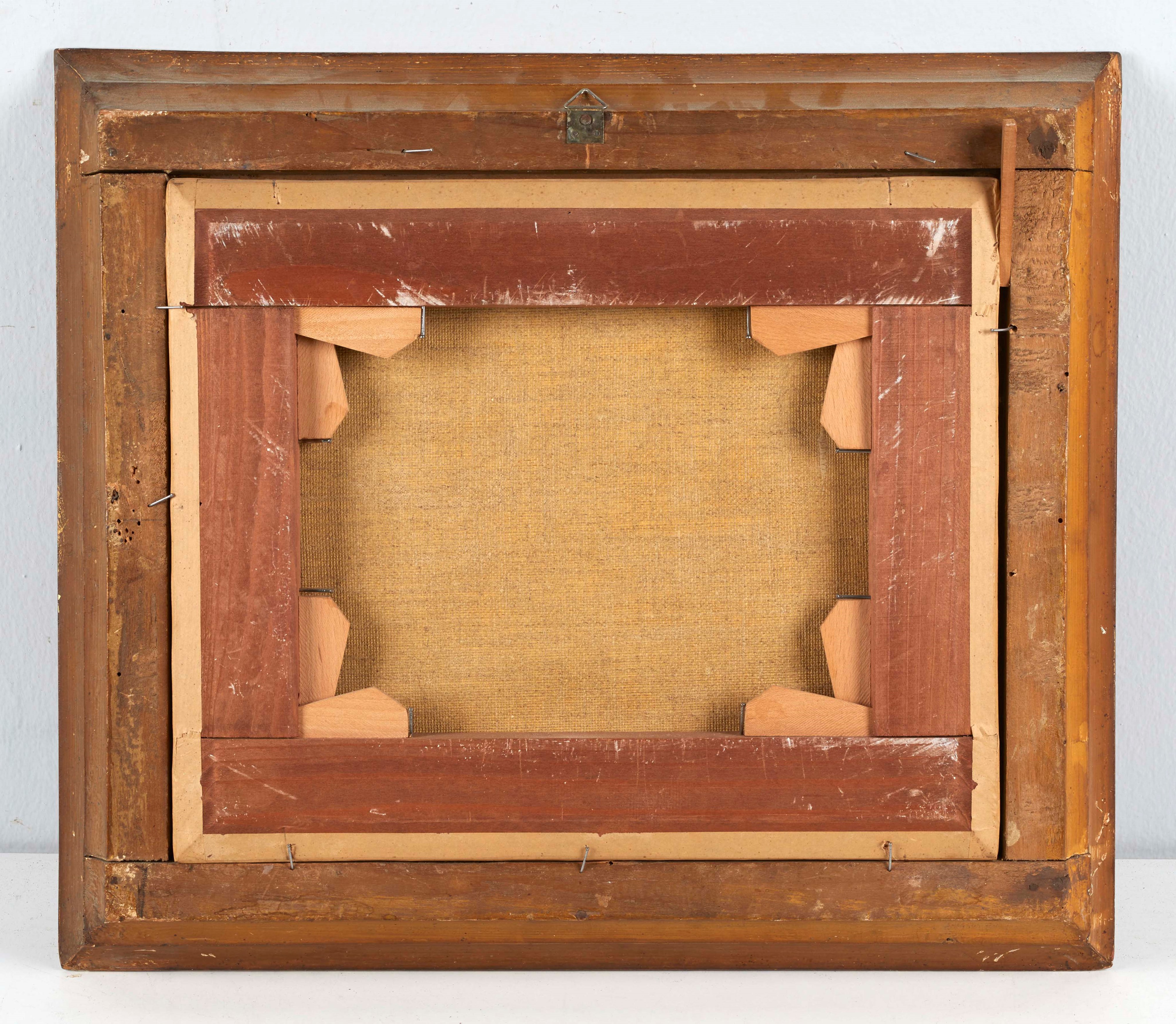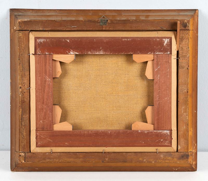 Maestro del XVIII secolo, "Paesaggio". Olio su tela. Cm 28x34.