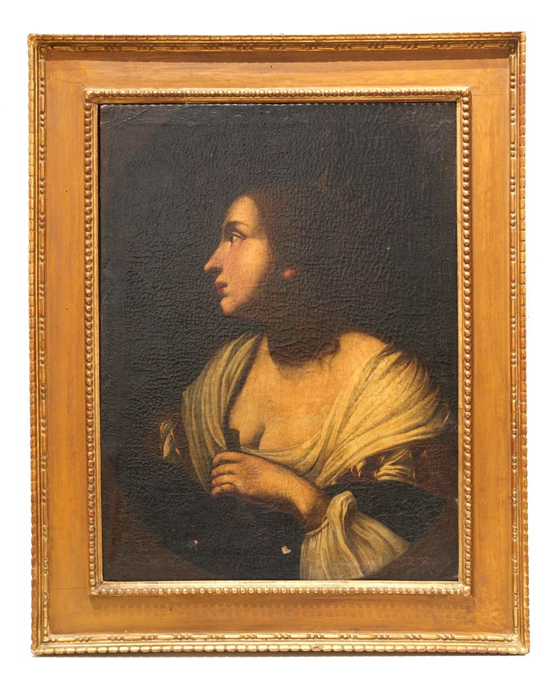 Maestro napoletano del XVII secolo "Santa". Olio su tela. Cm 67x50.