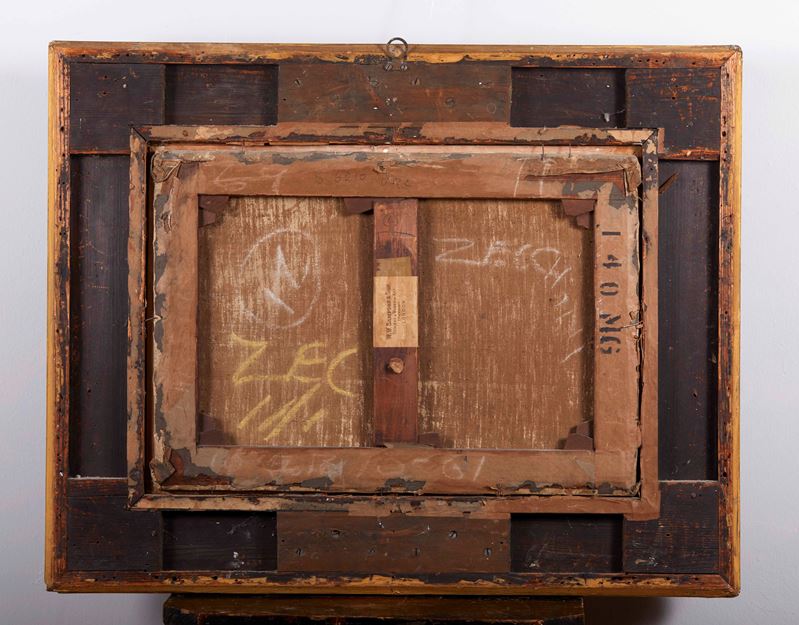 “Senza titolo”. XX secolo. Olio su tela. Cm 42x61. Opera firmata in basso a sinistra. Al retro reca etichetta W.S. Sampson & Son, London.