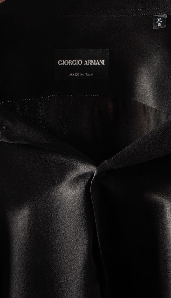 GIORGIO ARMANI Camicia in seta nera. Taglia 38/15. Reca etichetta Giorgio Armani, Made in Italy. (lievi difetti)
