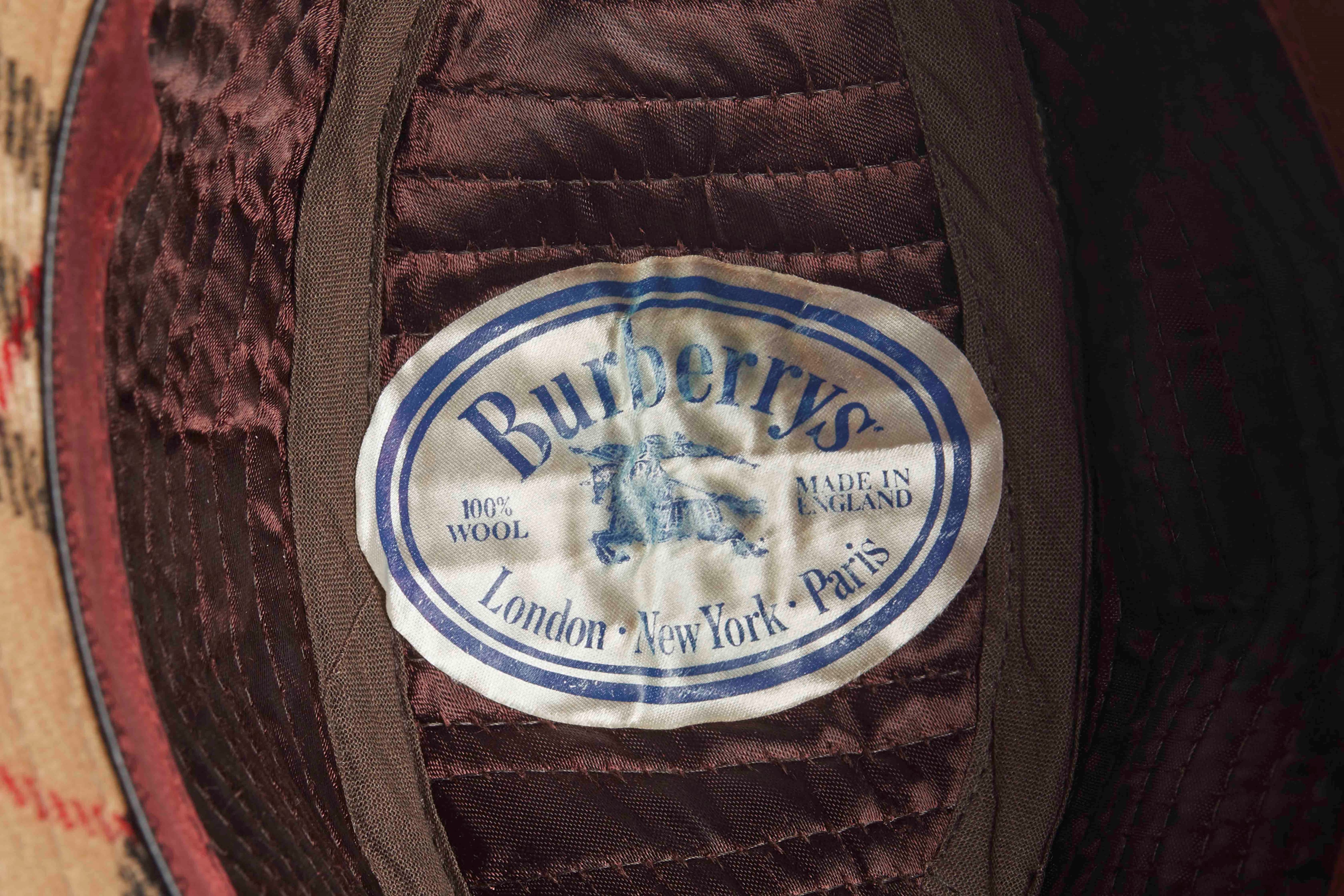BURBERRYS Cappello in lana nella tipica fantasia della Maison. Taglia 7 1/8 - 58. Reca etichetta Burberrys.