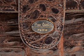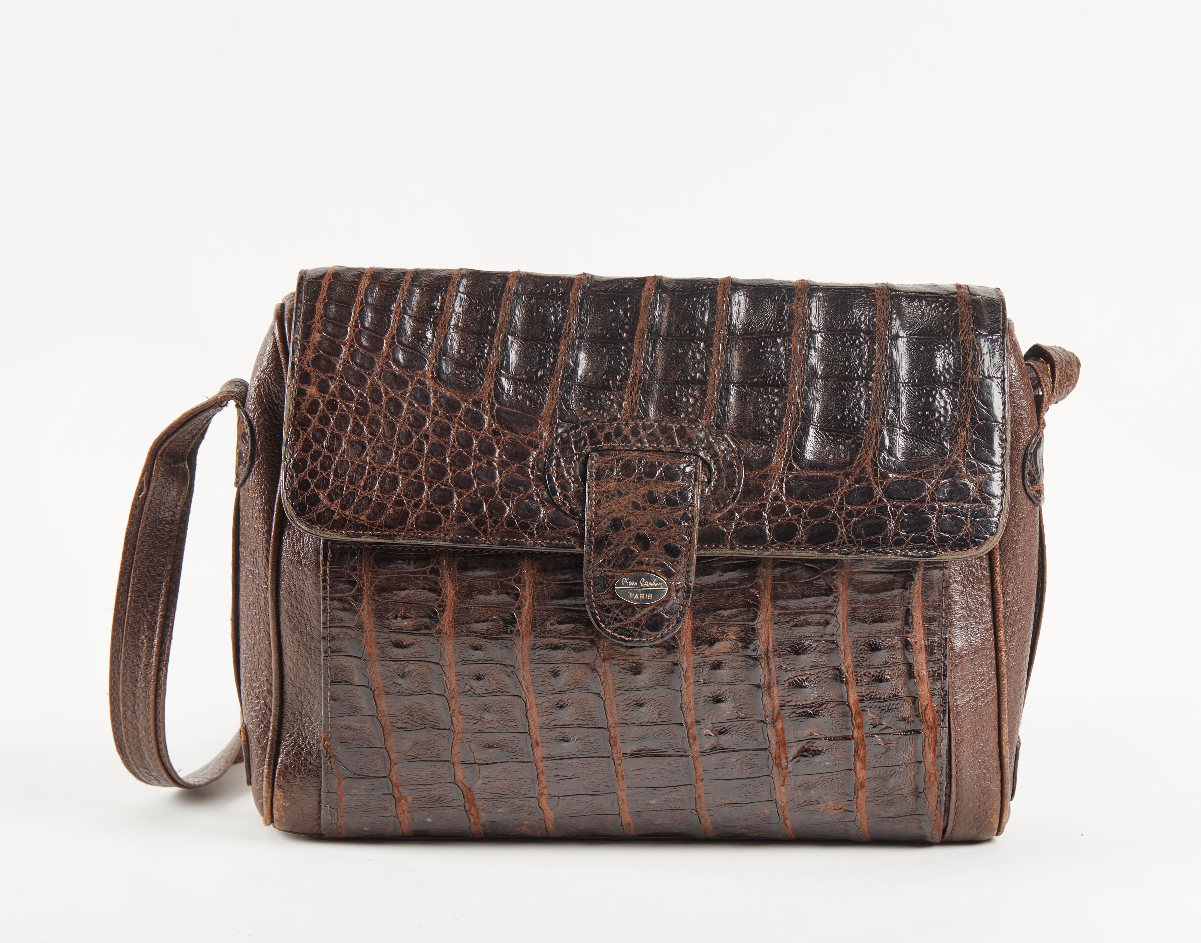 PIERRE CARDIN Borsa a tracolla in coccodrillo marrone e pelle. Cm 23x29x6. Reca marchio Pierre Cardin, Paris. (difetti)