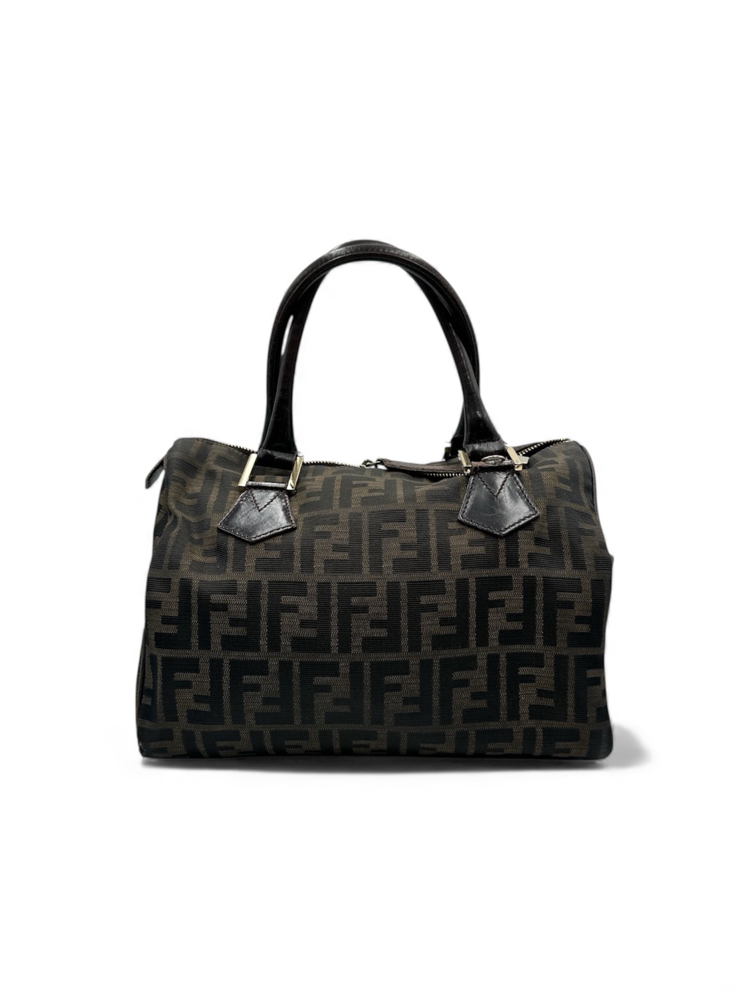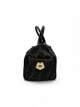 FENDI Bauletto in tela di nylon Zucca, con inserti in pelle e dettagli in metallo. Cm 18x28x16,5. Reca marchio Fendi, Made in Italy e numero di serie. (difetti)