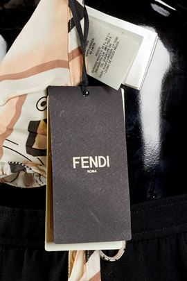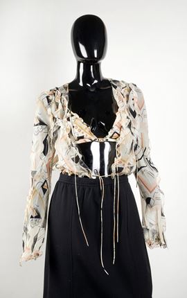 FENDI Set composto da camicia e reggiseno in chiffon di viscosa, stampato abstract. Taglia IT 42. Reca etichetta Fendi.