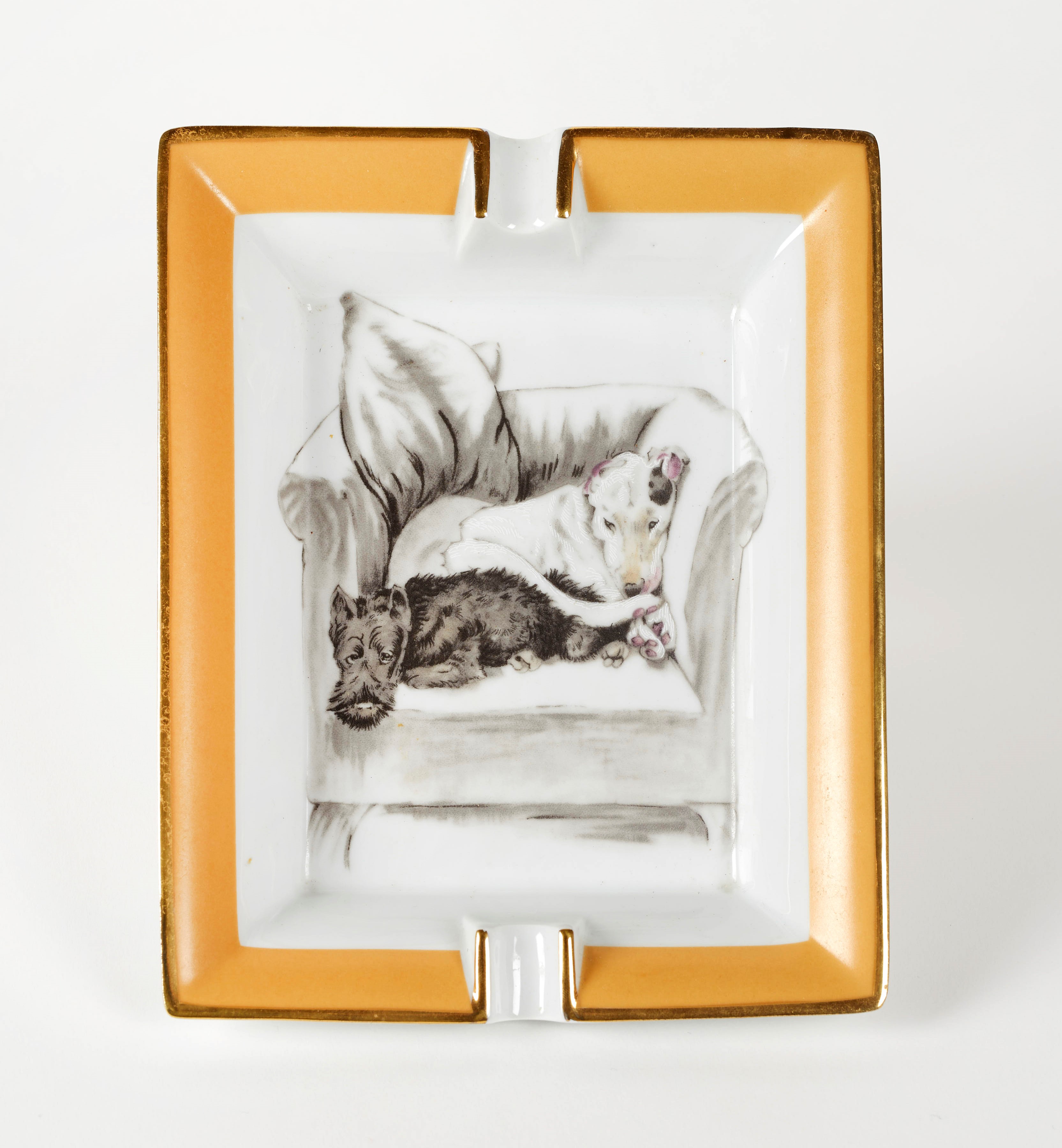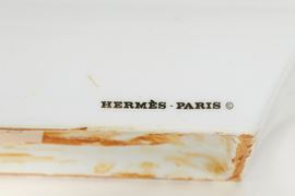 HERMÈS Posacenere in porcellana decorata. Cm 19x15,5. Al retro reca marchi Hermès Paris, Made in France.