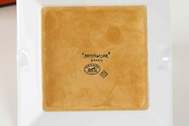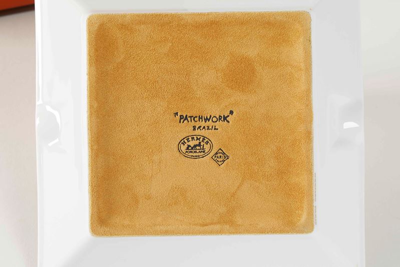 HERMÈS Posacenere in porcellana decorata. Reca marchio Hermès, Paris. Cm 16x16x3,5. Corredato di scatola