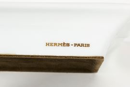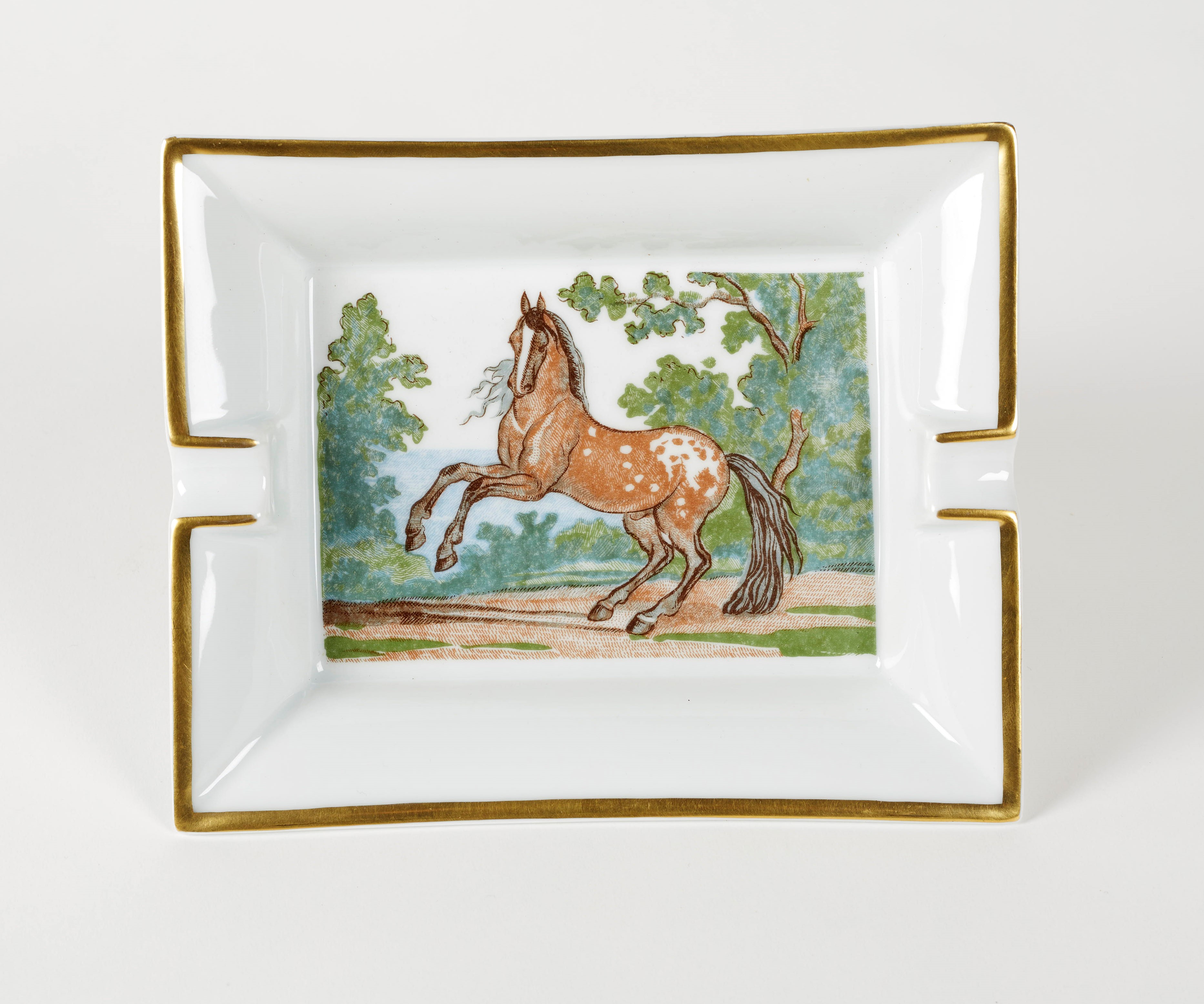 HERMÈS Posacenere in ceramica policroma decorata. Cm 15,5x19x4. Reca marchi Hermès Paris, Made in France.