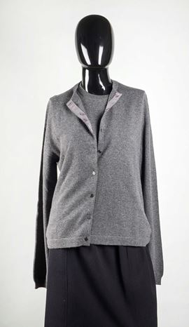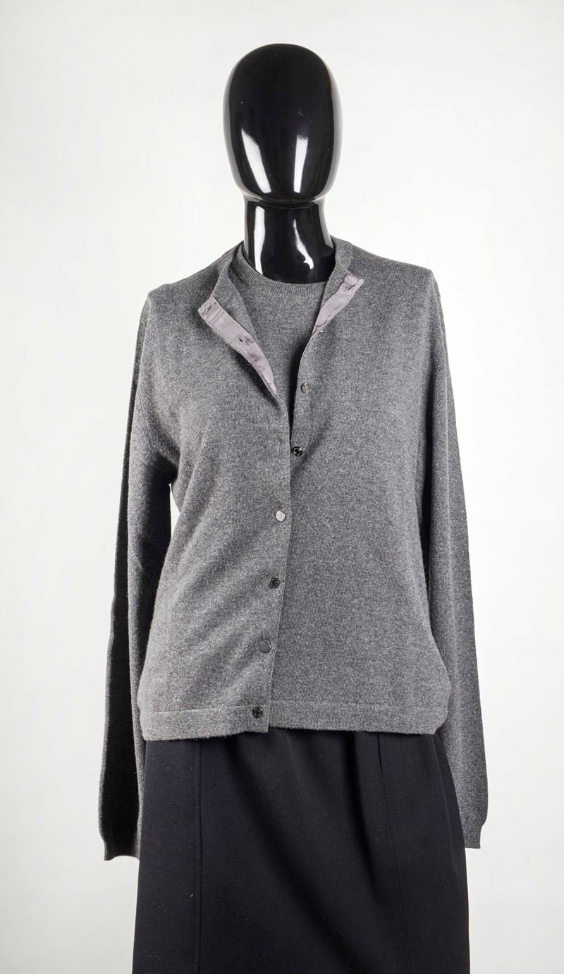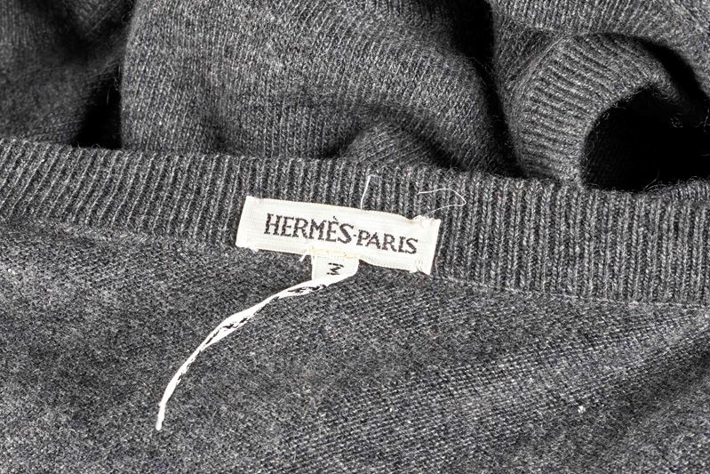 HERMÈS Twin set composto da smanicato e cardigan in color grigio in puro cachemire. Taglia IT XL. Recano etichette Hermès Paris.