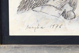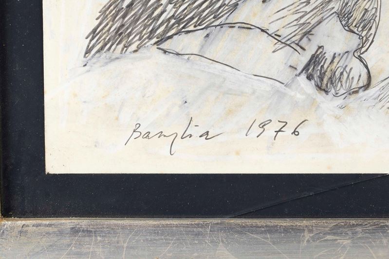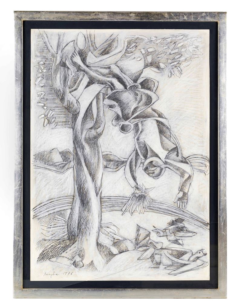 BASAGLIA VITTORIO (Venezia 1936 - Pinzano Al Tagliamento 2005) "La Caduta", 1976. Tecnica mista su carta. Cm 50x70. Opera firmato e datata in basso a destra Basaglia 1976.